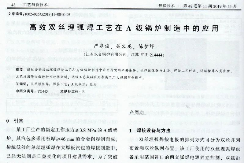 雙絲埋弧焊技術(shù)早就有應(yīng)用了,但因?yàn)闊彷斎胼^大,在鍋爐、壓力容器等承壓設(shè)備制造領(lǐng)域還是很少應(yīng)用的。在行業(yè)里這么干,雙良鍋爐真是第一次。