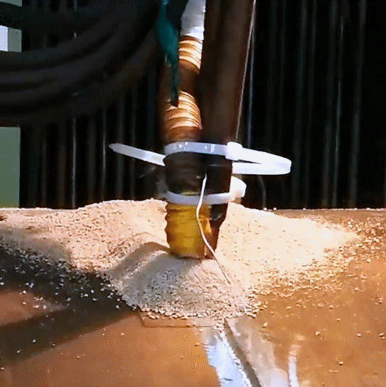 面對(duì)重重挑戰(zhàn),生性不服輸?shù)膰?yán)建俊與難題拗上了勁。每一次試驗(yàn)后,他都做出深刻總結(jié),在失敗原因與解決辦法中反復(fù)思考,利用大量休息時(shí)間,查閱了相關(guān)學(xué)術(shù)論文技術(shù)資料,但“破局”似乎總是遙遙無期。偶然間與同學(xué)的一通電話,給這件事帶來了轉(zhuǎn)機(jī)。電話中,與從事海工產(chǎn)品制造并了解環(huán)焊縫焊接的同學(xué)的一番交流,為他理清了思緒,找到了針對(duì)性的措施。在優(yōu)化了焊接參數(shù)的相關(guān)匹配后,在攻關(guān)上歷盡劫波的嚴(yán)建俊終于成功了,雙絲機(jī)頭的結(jié)構(gòu)排列、焊劑和焊縫金屬濺出問題、根部焊道清渣困難都得到徹底解決。